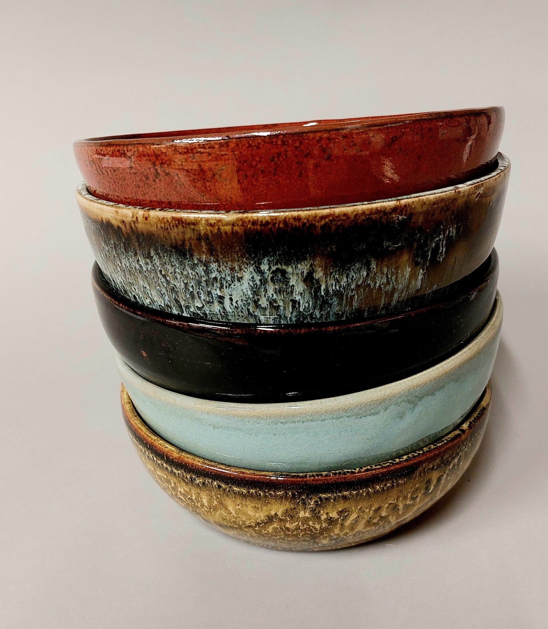 de basiscollectie is gemaakt met reactieve glazuren , dit zijn glazuren die bij iedere stook licht veranderend zijn en toch in dezelfde lijn liggen